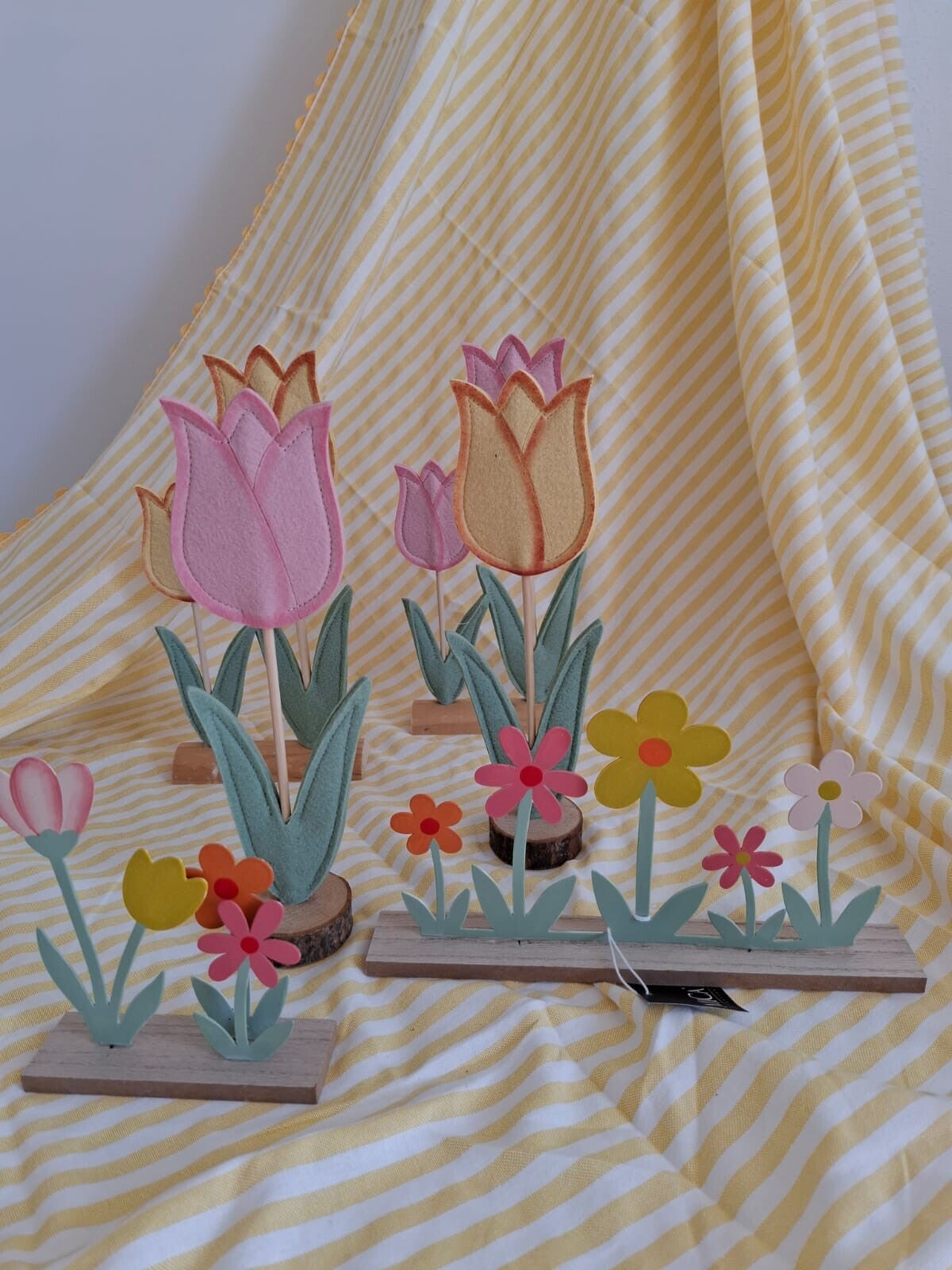 Mica Metaal/Hout Gekleurde Bloemen Klein - H15,5xD13 cm
